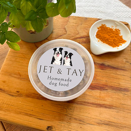Jet and Tay's homemade dog food is made with fresh, natural ingredients, combined with the anti-inflammatory power of turmeric and the detoxifying benefits of basil. These work together to nourish your dog from the inside out. You’ll notice the difference not just in their shiny coat and clear eyes, but in their vitality and longevity.